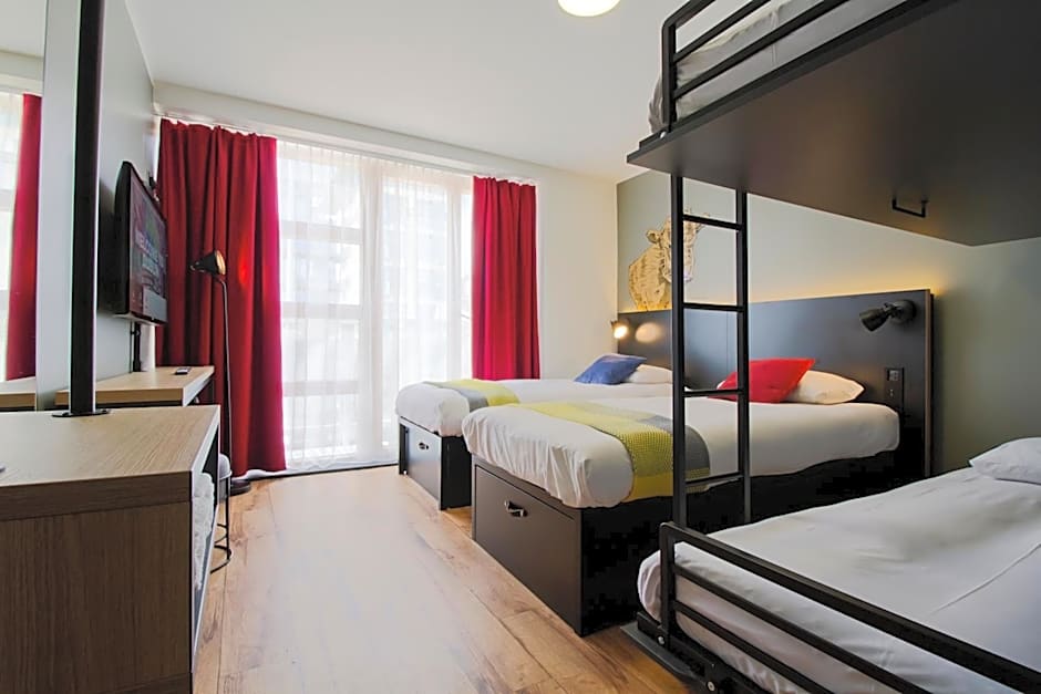 Rooms are 20 square yards. "Keeping family first with this room for four.