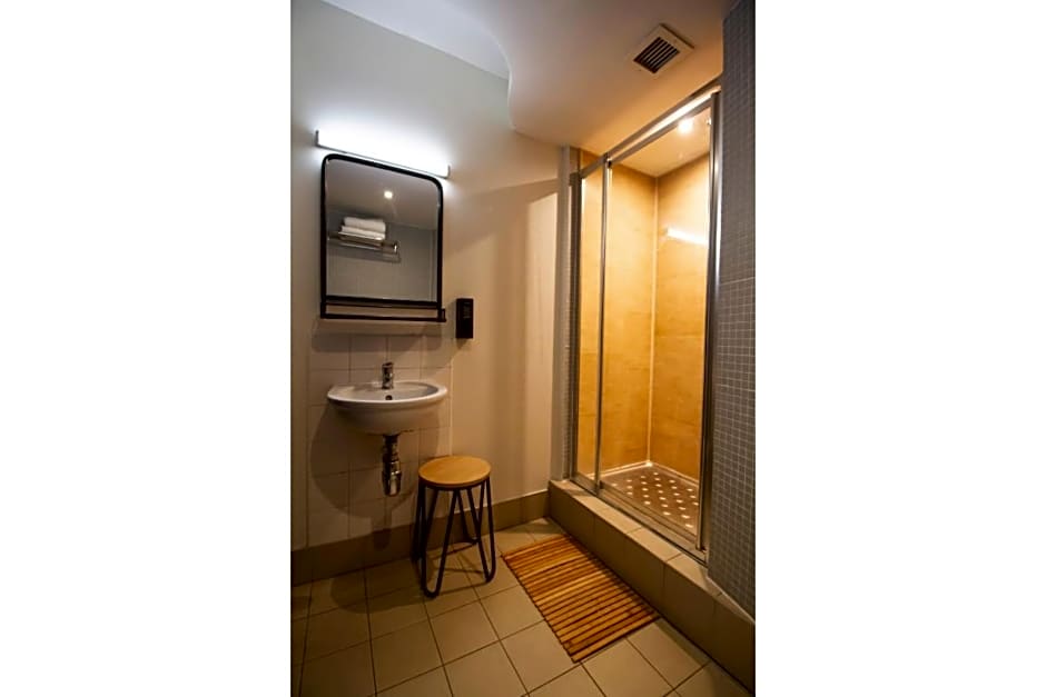 Private Twin Room with a private bathroom, a hanging unit or locker, bed linen, and towels. Please note room may have 2 single beds or a set of bunk beds. "Putting the WIN back in twin.